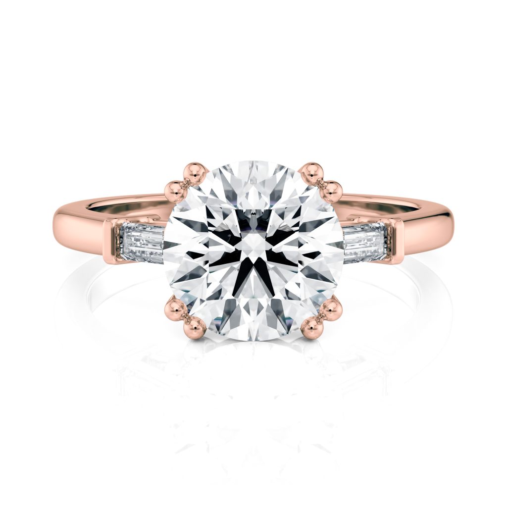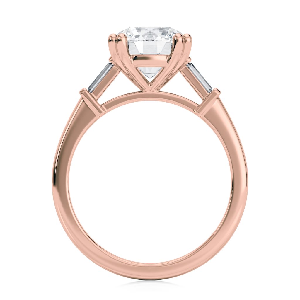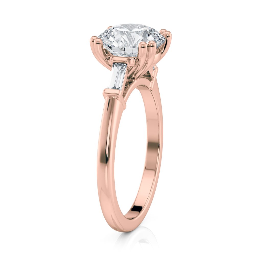 14k Rose Cathedral Baguette Lab Diamond Engagement Ring