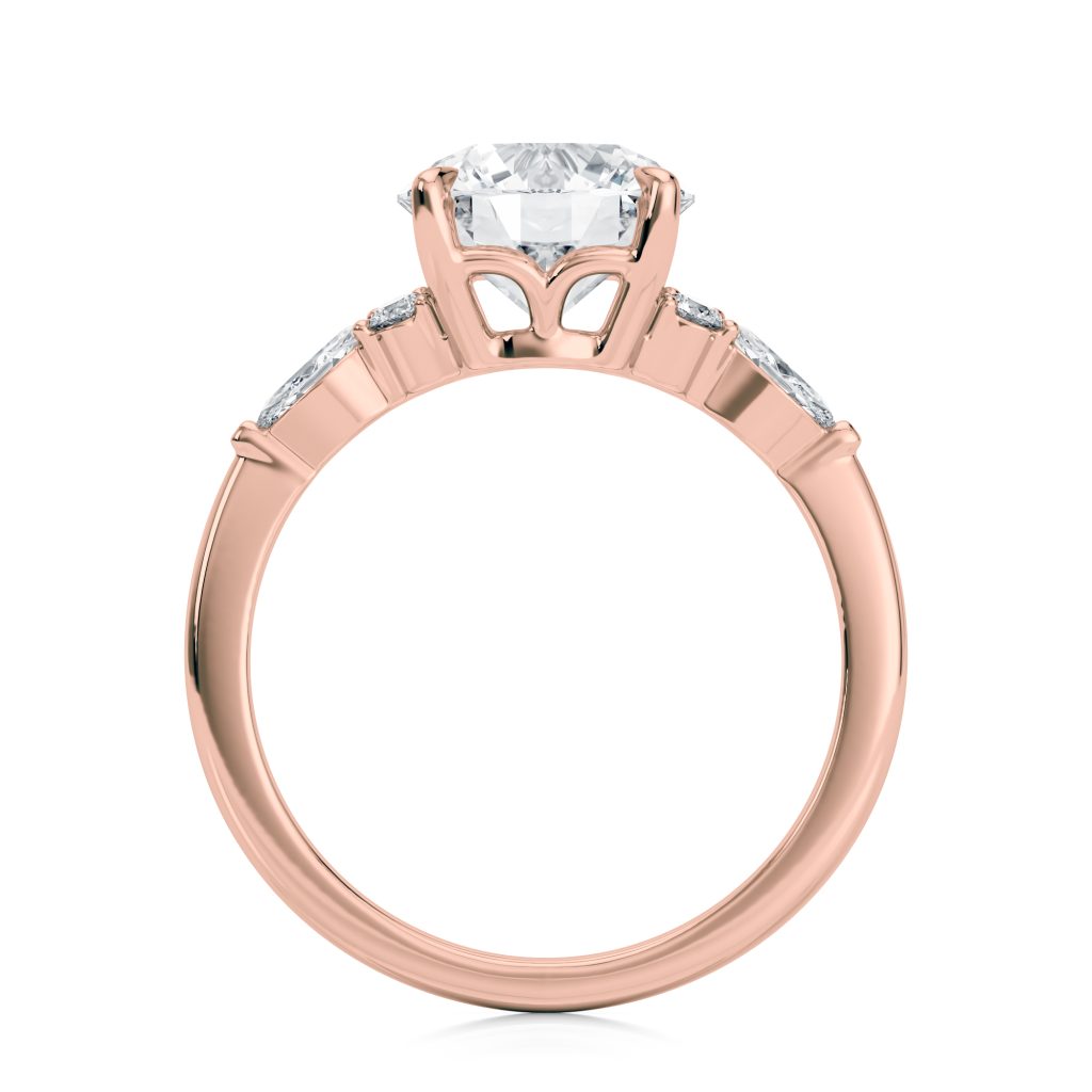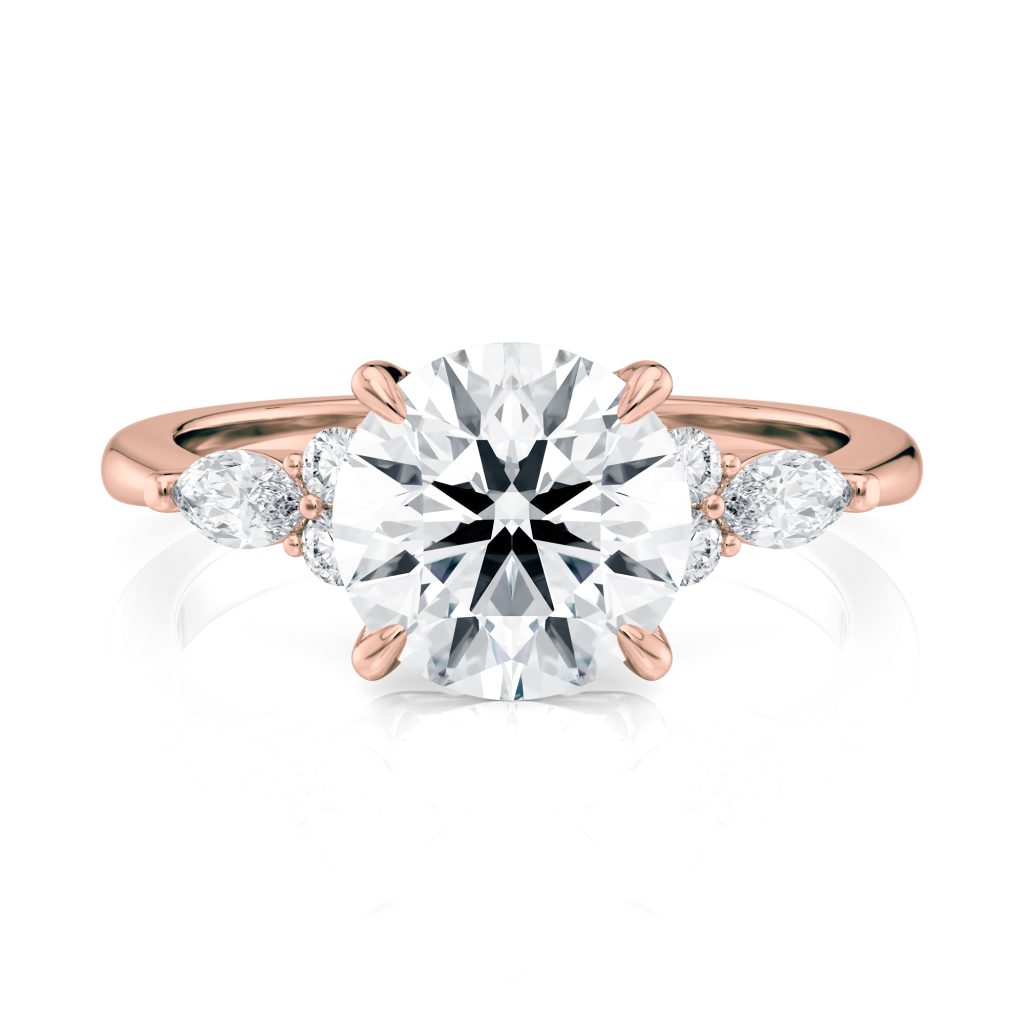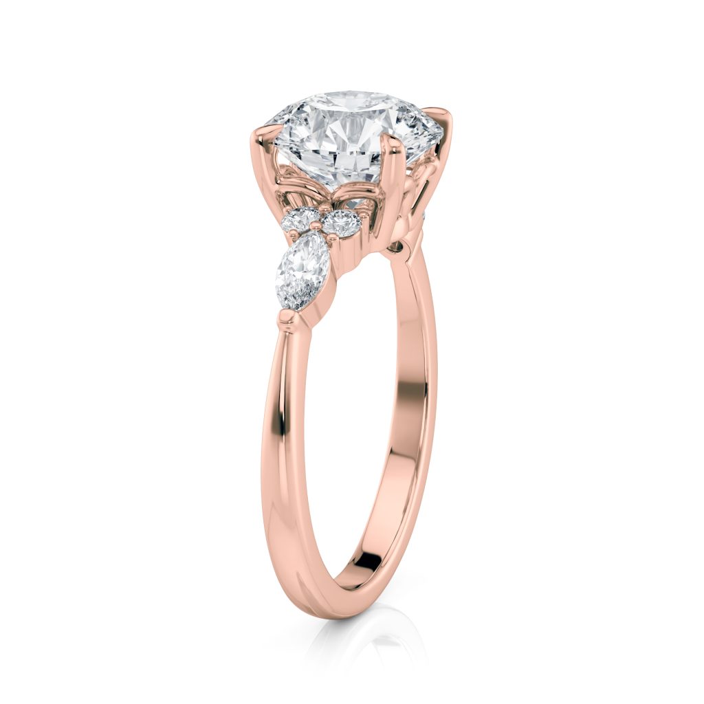 14K Rose Gold Lab Round Center With Marquise & Round Cluster Engagement Ring