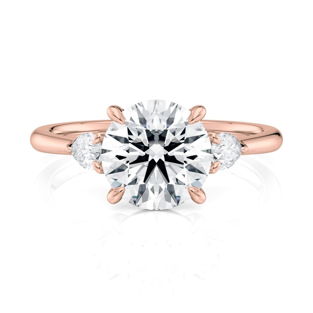 14K Rose Gold Three Stone Pear Diamond Engagement Ring-Sits Flush With A Wedding Band