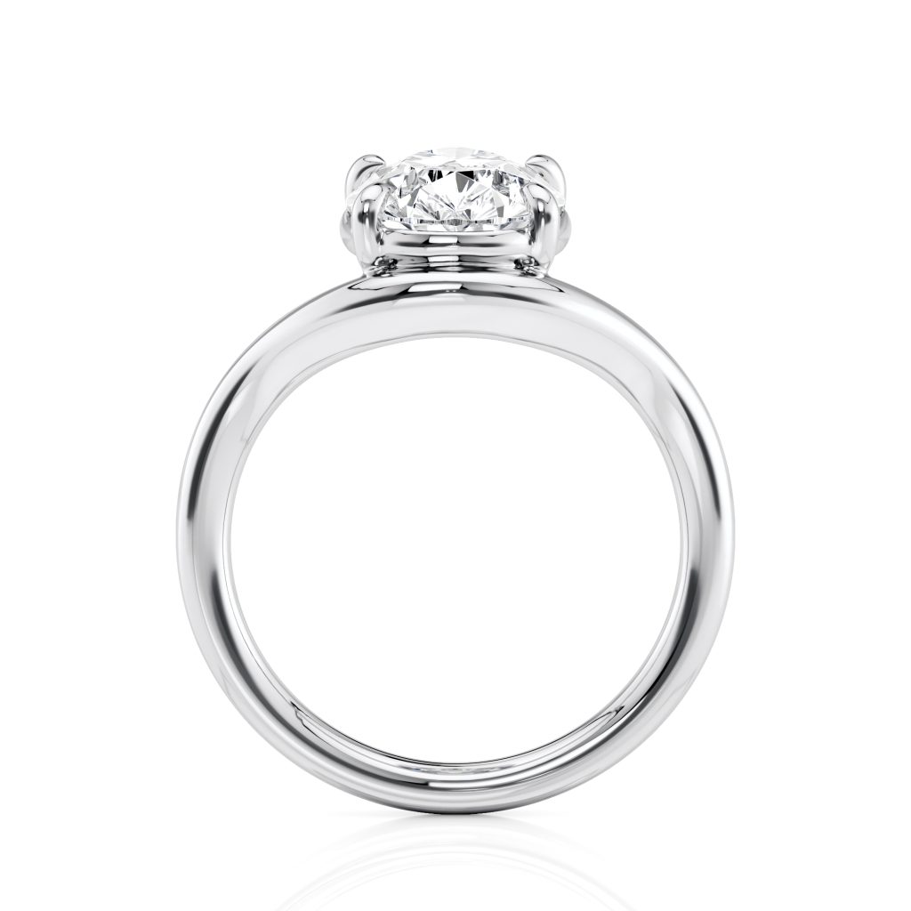 Cradle your diamond with a smooth, modern line, highlighting its beauty and shape. A timeless design made to celebrate forever.
