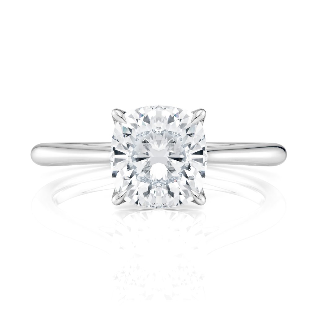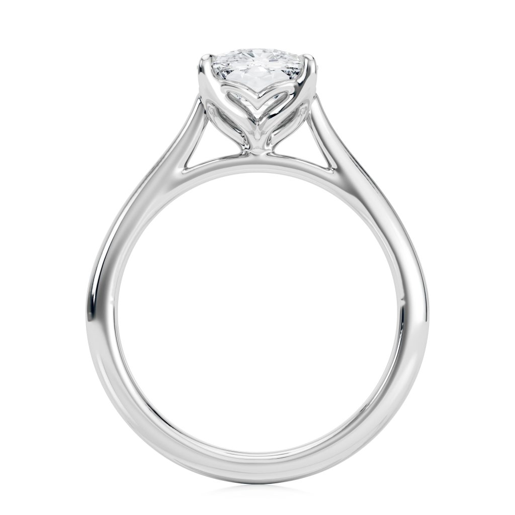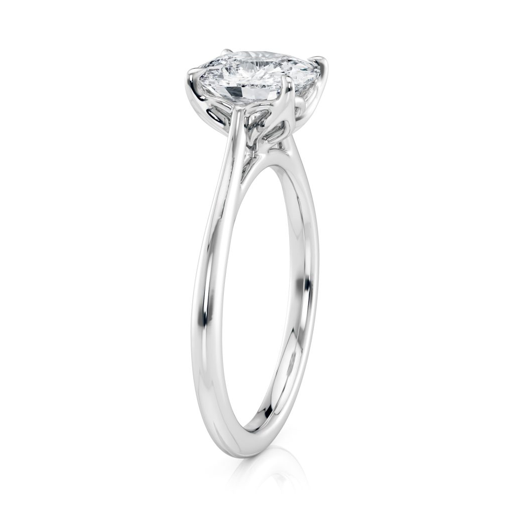 The Cathedral Petal is a solitaire engagement ring featuring delicate petal-inspired prongs, a sculptural cathedral setting, and durable tapered shoulders. Its low-profile, stackable design makes it comfortable for everyday wear. Timeless. Elegant. Effortlessly romantic.