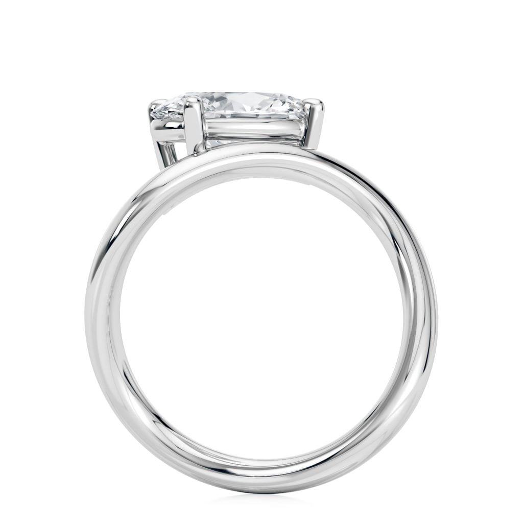 The bypass design flows around the center stone, blending modern elegance with symbolic meaning—crafted in precious metal for a look that’s both fluid and timeless.