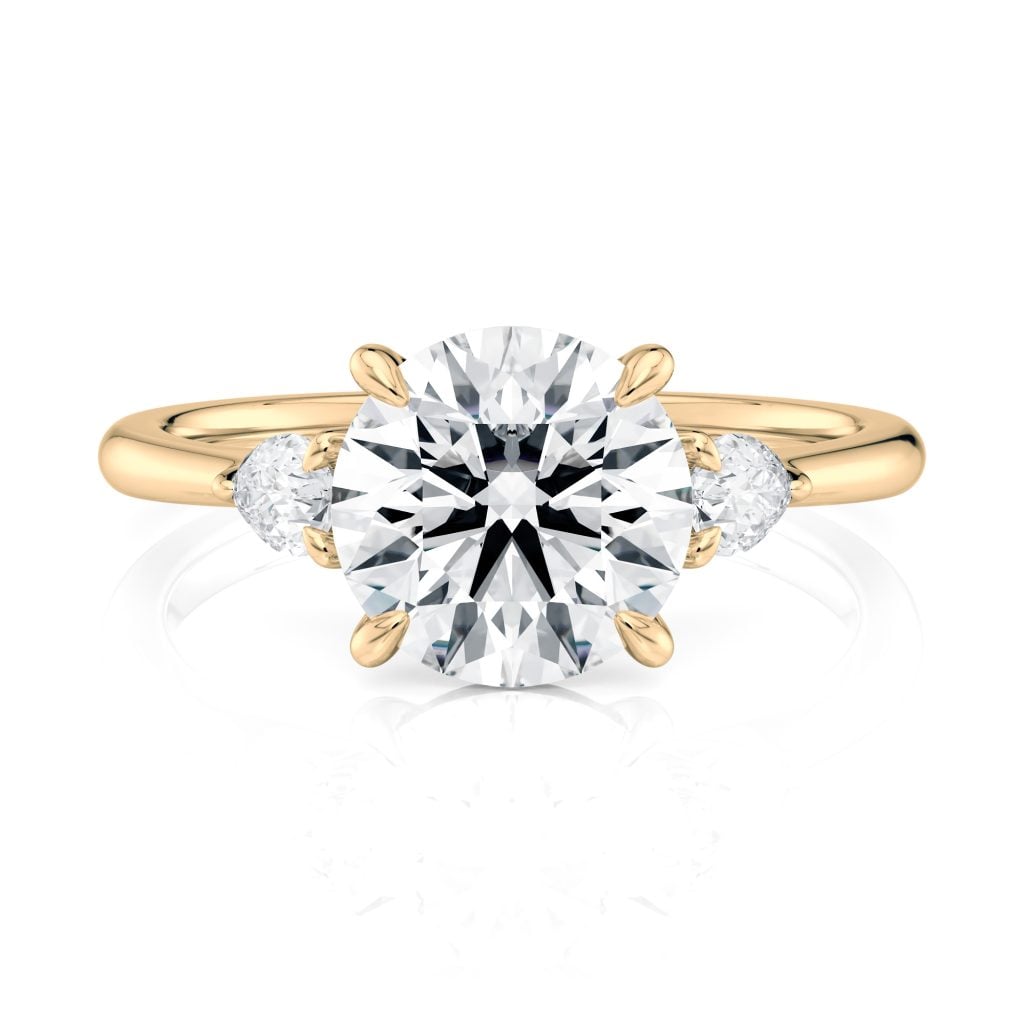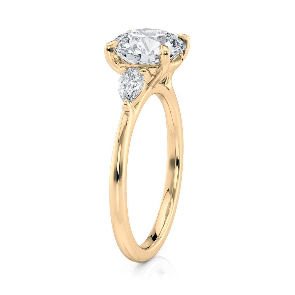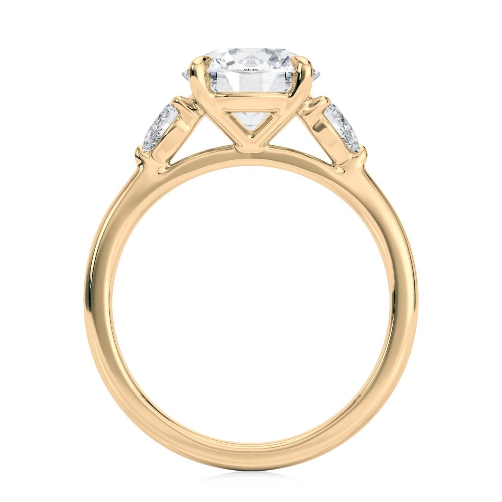 14K Yellow Gold Three Stone Pear Diamond Engagement Ring-Sits Flush With A Wedding Band